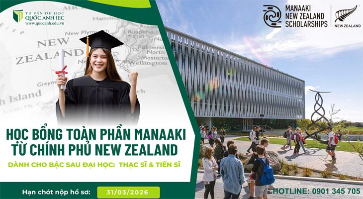 Học Bổng Chính Phủ Toàn Phần Manaaki New Zealand 2026 chính thức mở đơn