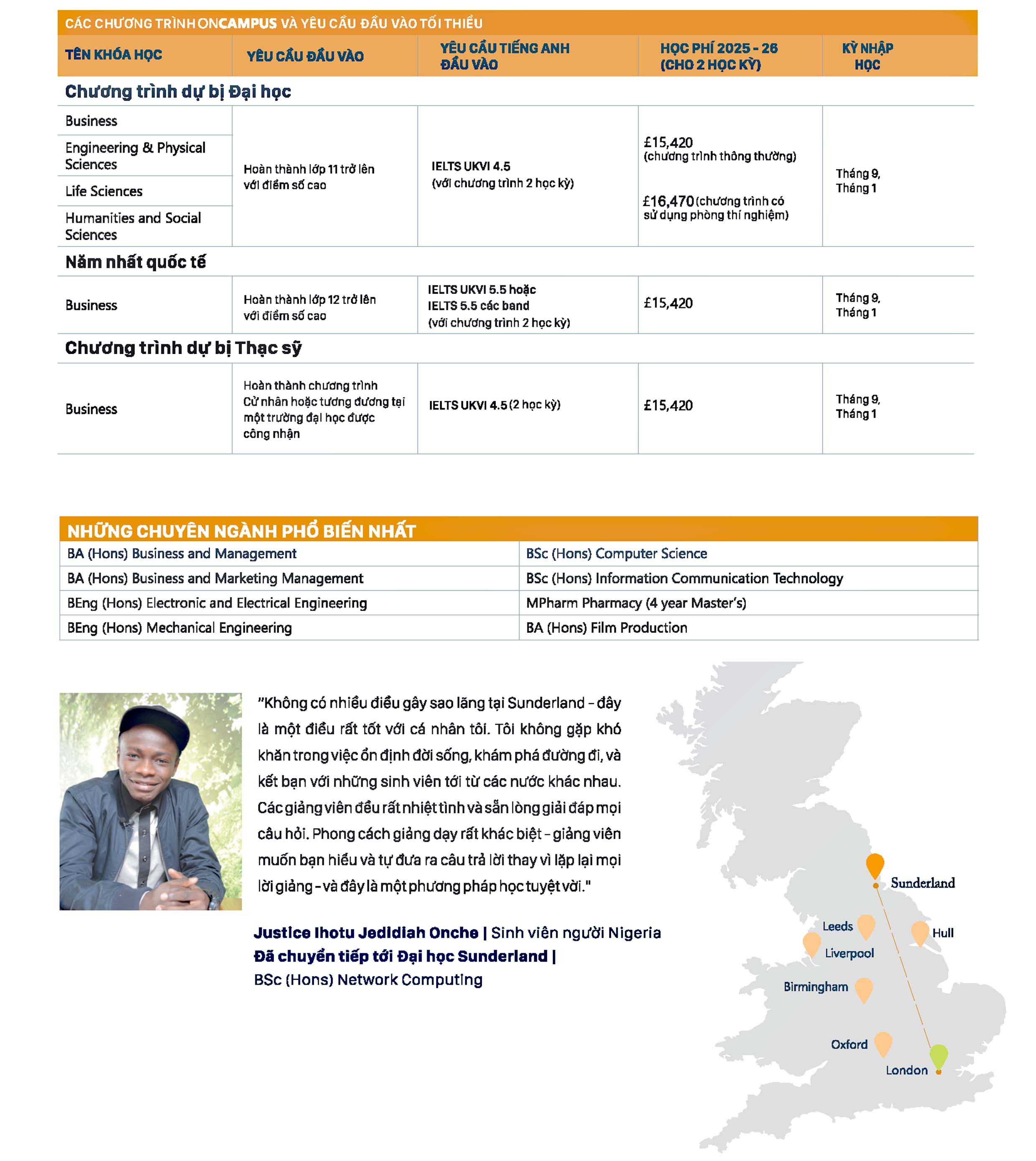 - Học bổng chuyển tiếp sau chương trình foundation, lên đại học Sunderland lên tới 5,000 GBP.