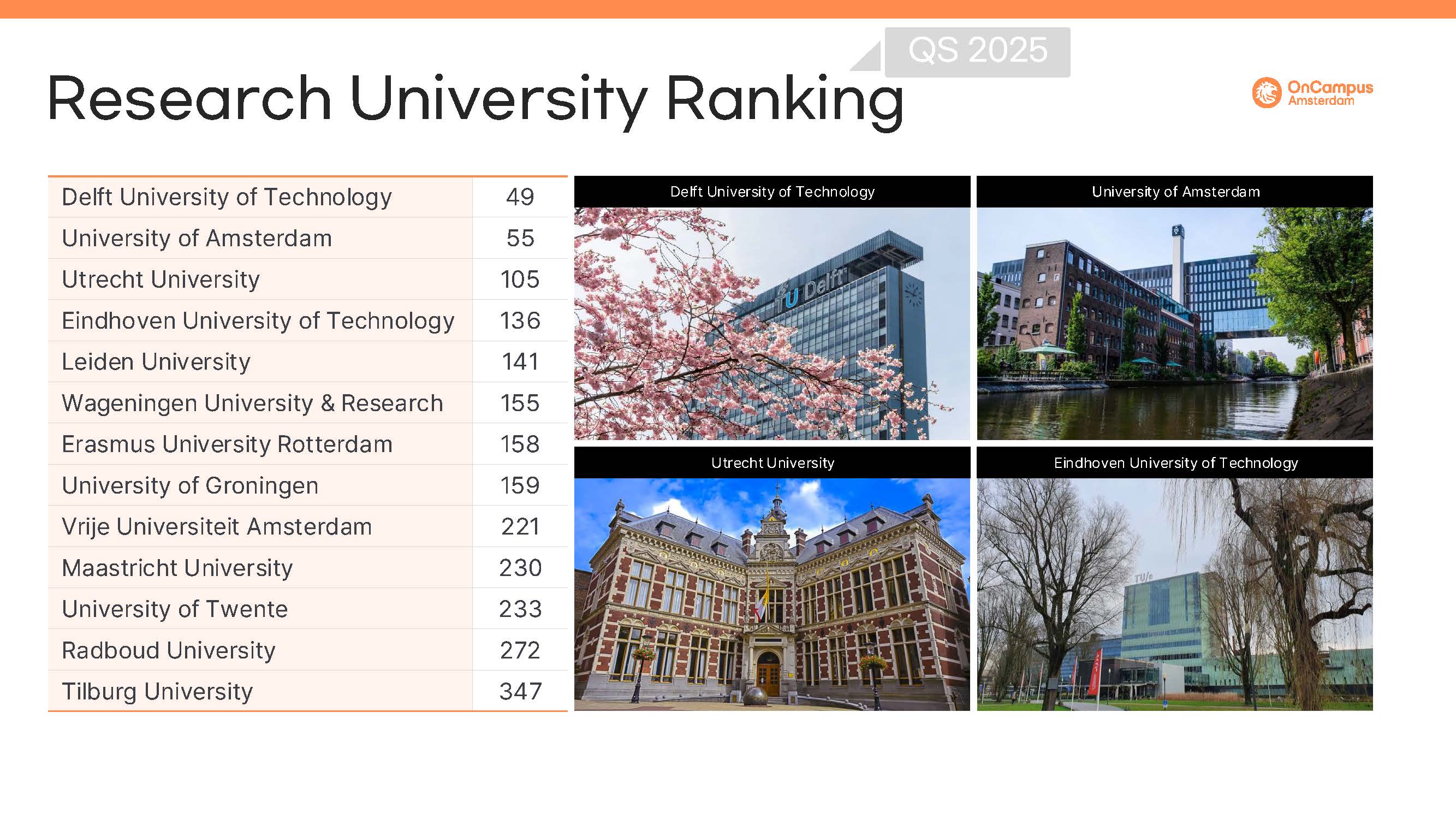 - Với thứ hạng cao, nhưng học tại Amsterdam, học phí và chi phí sẽ rẻ hơn một nửa hoặc bằng 1/3 so với các trường cùng thứ hạng ở các nước khác như Anh, Úc và Mỹ.