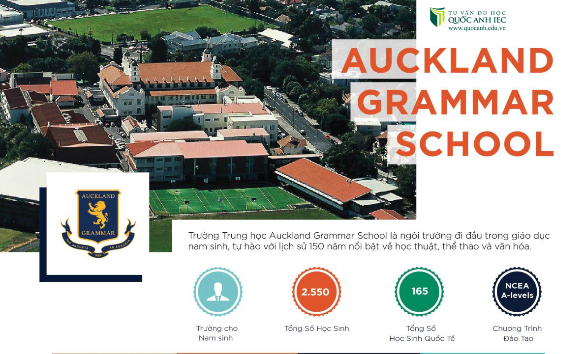 - Trường Trung học Auckland Grammar School là ngôi trường đi đầu trong giáo dục nam sinh, tự hào với lịch sử 150 nổi bật về học thuật, thể thao và văn hóa.