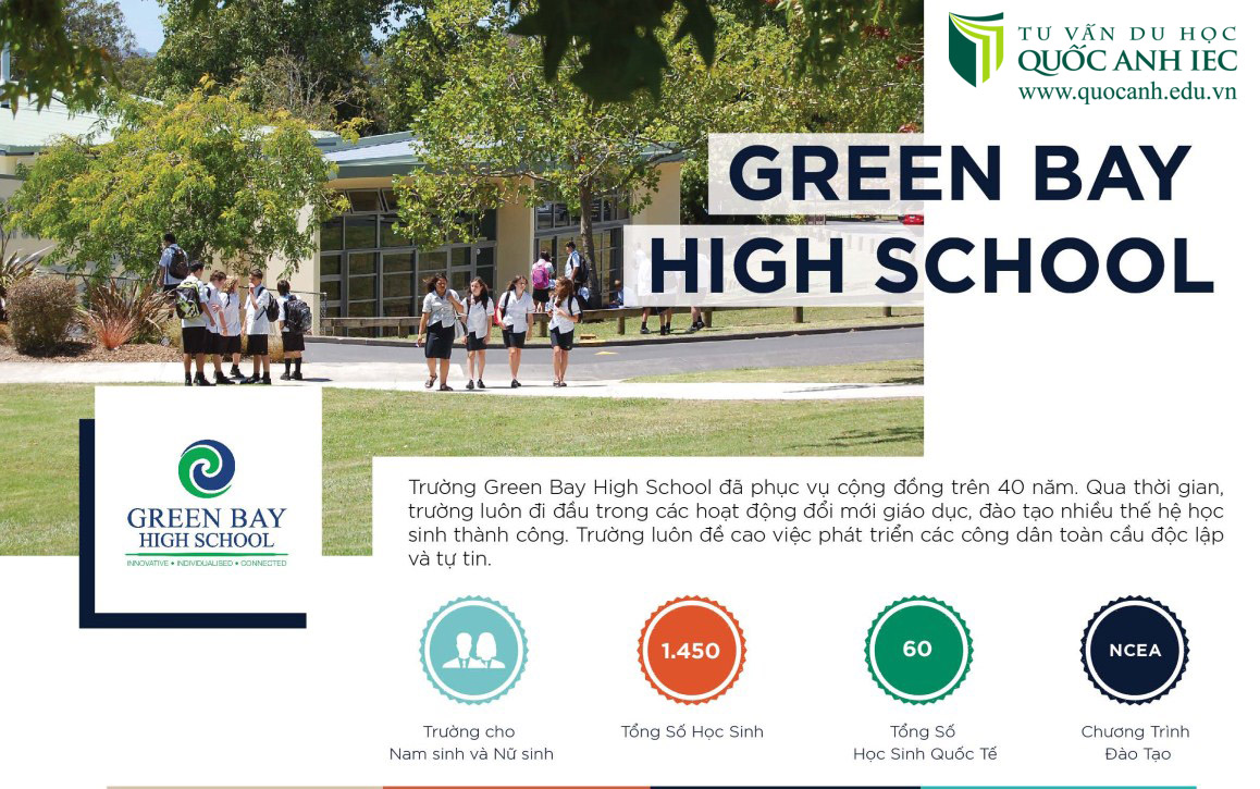 - Green Bay High School đào tạo cho các học sinh phổ thông tại New Zealand từ lớp 9 đến lớp 13. Trường tọa lạc ở vịnh Green Bay, phía Tây thành phố Auckland, cách trung tâm thành phố khoảng 17km và cách Sân bay Quốc tế Auckland 25 phút lái xe. Trường nằm gần các tiện ích dịch vụ và hệ thống xe buýt công cộng trải rộng khắp giúp các em dễ dàng đến trường cũng như khám phá du lịch.