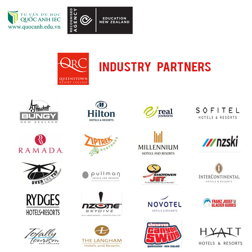 Trường Queenstown Resort College có một danh sách các đối tác nổi tiếng và cao cấp bậc nhất trong lĩnh vực nhà hàng khách sạn như Hilton, Sotel, Ramada, Rydges, Millenium, Hyatt v.v.. Sinh viên tham gia khóa học tại trường sẽ được sắp xếp thực tập tại các khách sạn sang trọng bậc nhất này.