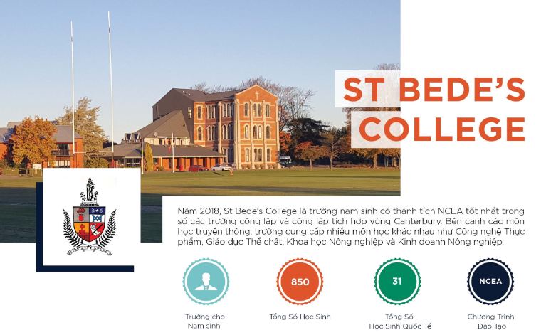 Trường trung học St Bede’s College là trường công giáo nội trú dành cho nam sinh. Trường tọa lạc tại thành phố Christchurch, New Zealand, trường được bao quanh bởi công viên rộng vô cùng khiến cho không gian trở nên thoáng đãng, rất lý tưởng để học tập và sinh hoạt.