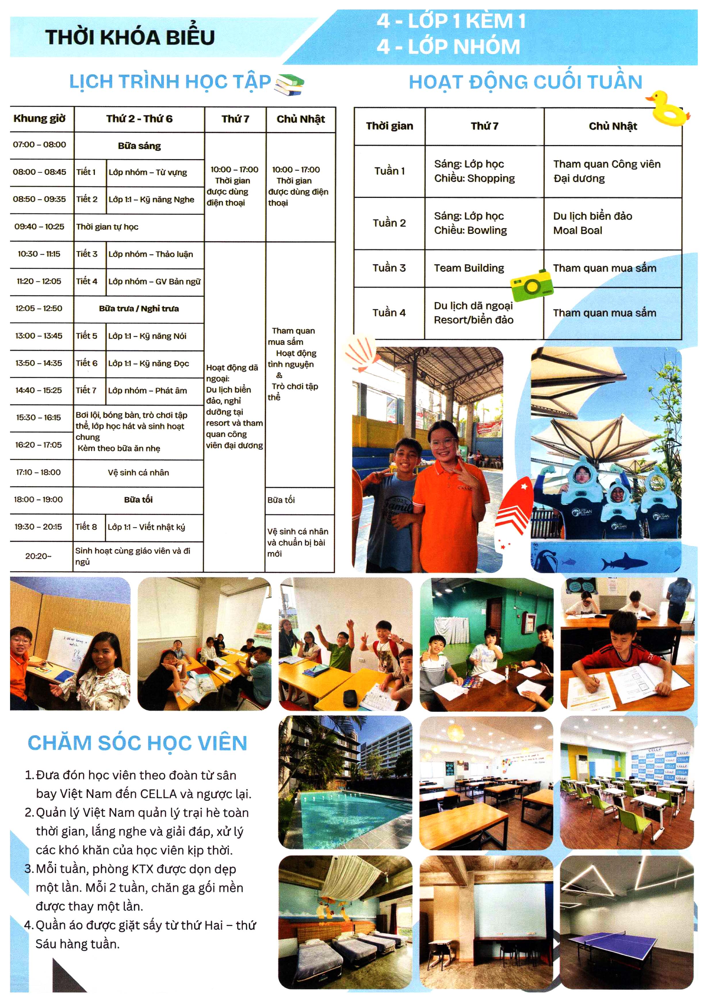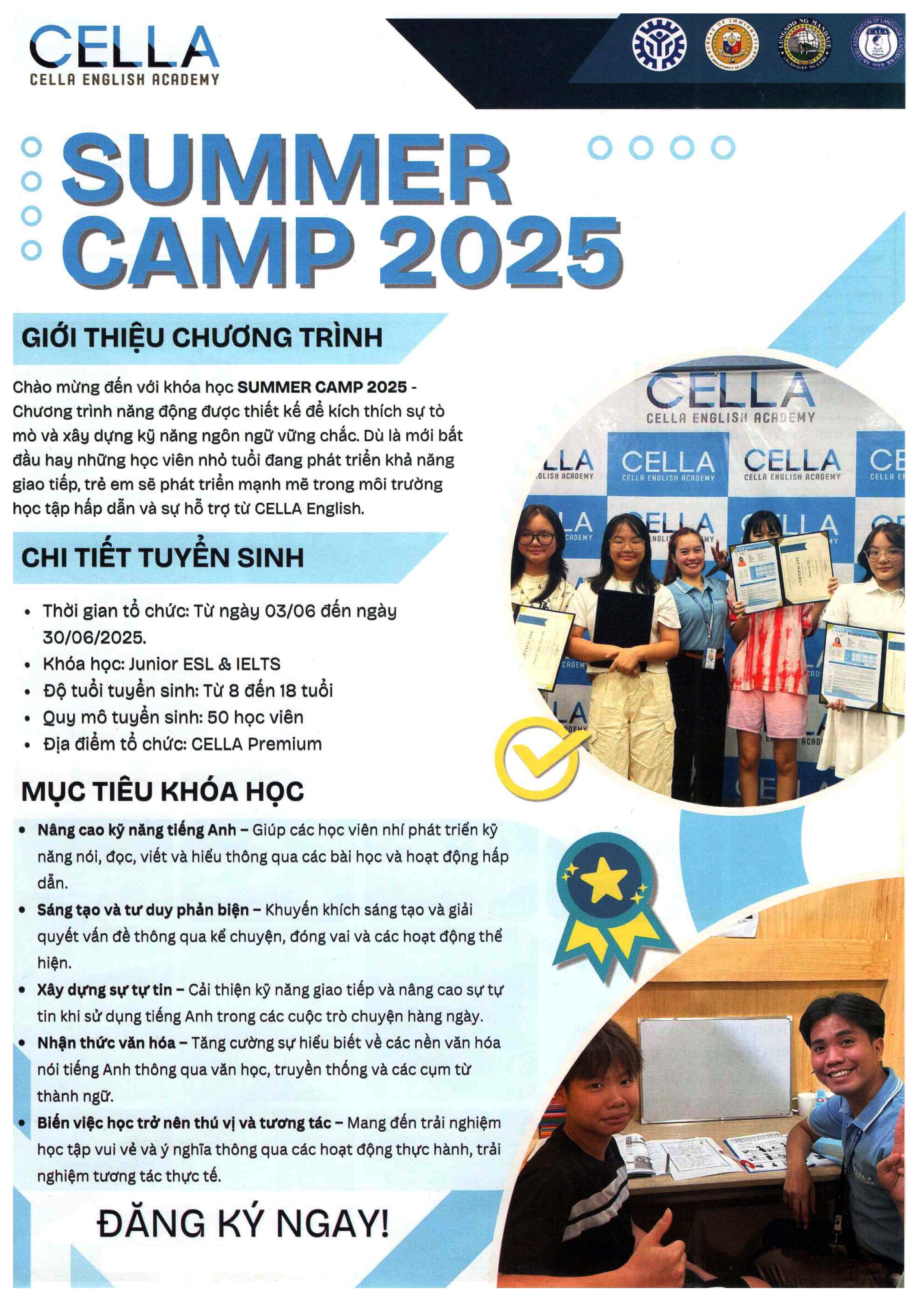 - Tặng 1 khóa học online 4 tuần trị giá 105$ cho học viên đăng ký Trại hè CELLA 2025