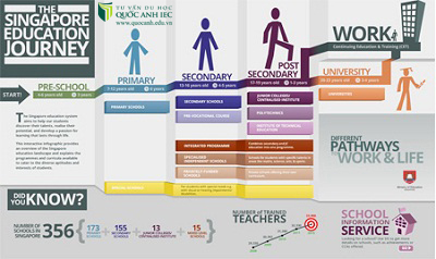 - Hệ thống giáo dục của Singapore được đánh giá là hàng đầu trên thế giới, hệ thống giáo dục Singapore phát triển theo phương châm mở, nghĩa là mỗi học sinh, sinh viên đều được phát huy tối đa năng khiếu và đam mê của mình. Phương châm này đã giúp cho học sinh phát triển được ở mức cao nhất tài năng của mình.
