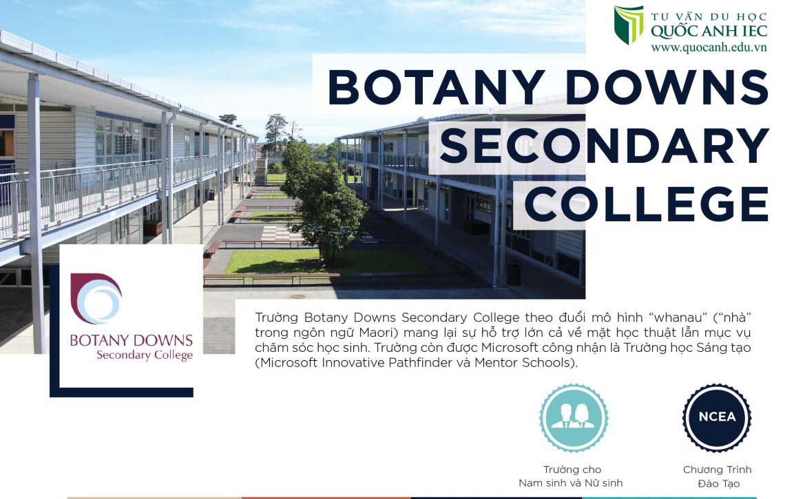 Botany Downs Secondary College (BDSC) là trường trung học phổ thông công lập dành cho cả nam sinh và nữ sinh. Trường cung cấp chương trình học từ lớp 9 đến lớp 13 theo hệ thống giáo dục New Zealand. Được thành lập từ năm 2004, BDSC có cơ sở vật chất và môi trường học tập hiện đại, với 1900 học sinh, 170 giáo viên và nhân viên. Triết lý giáo dục của BDSC tập trung giúp học sinh phát triển cả trình độ học thuật và phẩm chất cá nhân, giúp học sinh phát triển những năng lực cần thiết của thế kỷ 21.