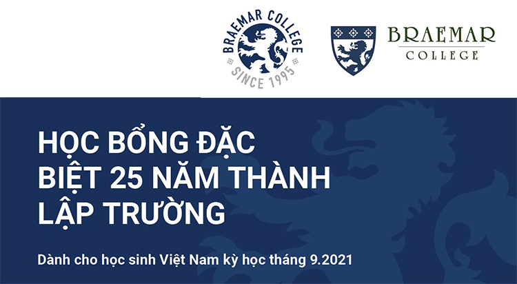 Nhân dịp 25 năm thành lập trường, Braemar College dành riêng học sinh Việt Nam nhiều suất học bổng đầu vào có giá trị, áp dụng cho kỳ nhập học tháng 9/2021.