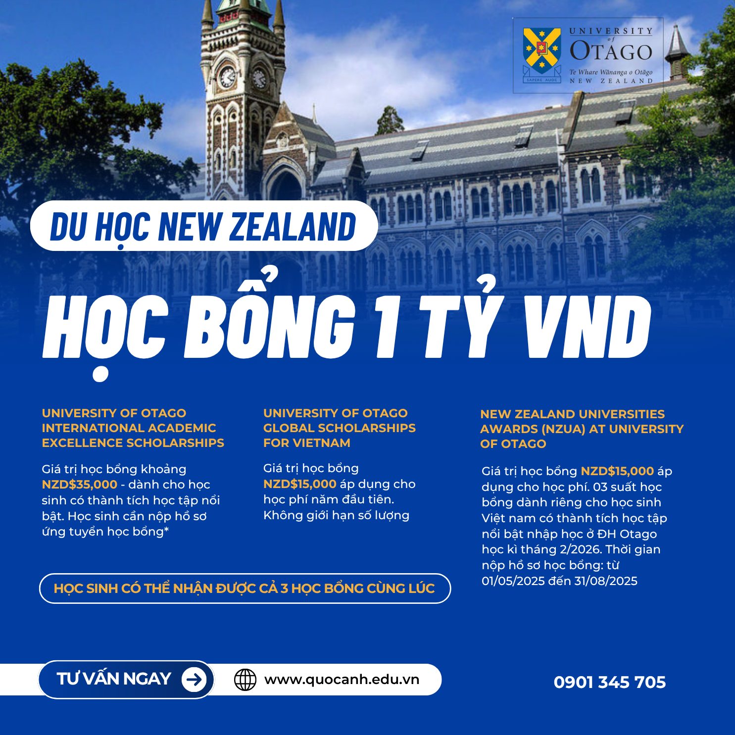 HỌC BỔNG ĐẠI HỌC OTAGO 2026 - DÀNH RIÊNG CHO SINH VIÊN VIỆT NAM