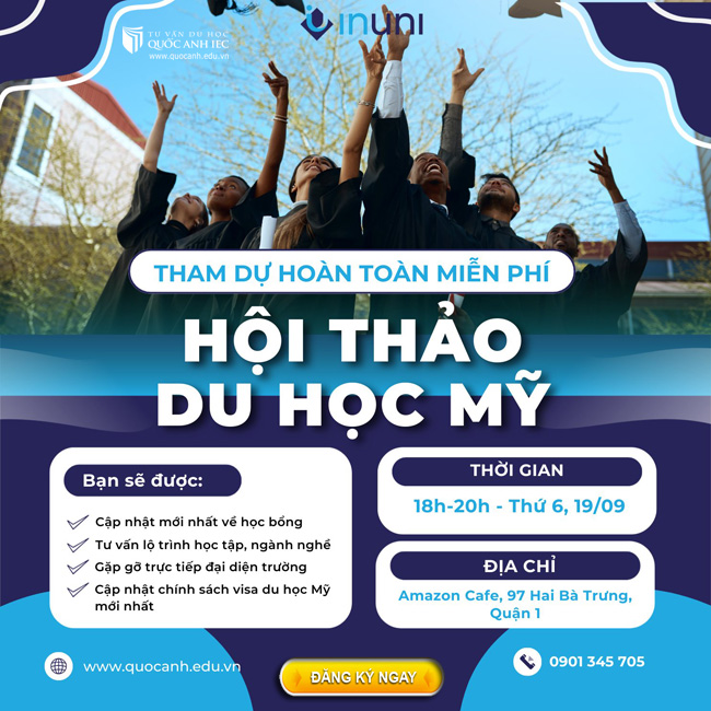 Đừng bỏ lỡ hội thảo hoàn toàn miễn phí của Du học Quốc Anh I.E.C và tập đoàn INUNI US tổ chức, nơi bạn được gặp gỡ trực tiếp đại diện tuyển sinh từ nhiều trường đại học Mỹ uy tín.