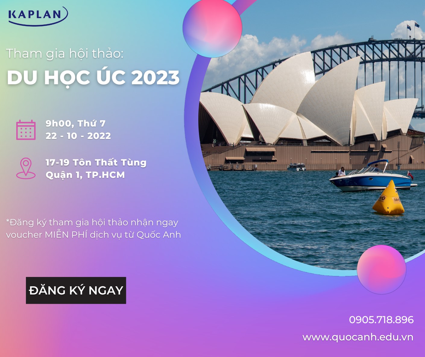 Du học Úc là lựa chọn của nhiều du học sinh ngày nay bởi Úc đang là đất nước "HOT" với nhiều chính sách mới hấp dẫn. Vậy những thắc mắc về du học và định cư Úc của bạn đã có ai giải đáp chưa? Nếu vẫn còn "chênh vênh" giữa vô vàn câu hỏi chưa có ai giải đáp, hãy cùng đến với buổi hội thảo Du học Úc 2023 với trường Kaplan bạn nhé!