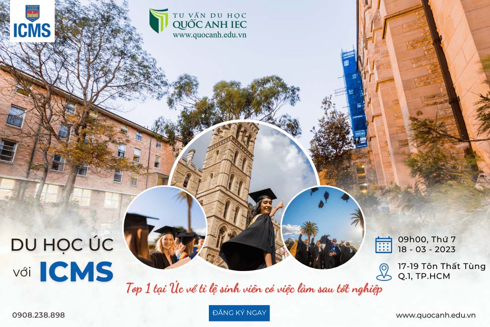 Tham gia Hội thảo du học Úc: CƠ HỘI NGHỀ NGHIỆP VÀ ĐỊNH CƯ RỘNG MỞ giúp bạn có cơ hội nhận ngay học bổng 50% ngay tại sự kiện khi phỏng vấn cùng đại diện trường ICMS. Ngoài ra, hội thảo còn là nơi giúp bạn có cái nhìn rộng mở hơn về môi trường học tập và làm việc tại Úc. Nhanh tay đăng ký ngay để không bỏ lỡ sự kiện bạn nhé