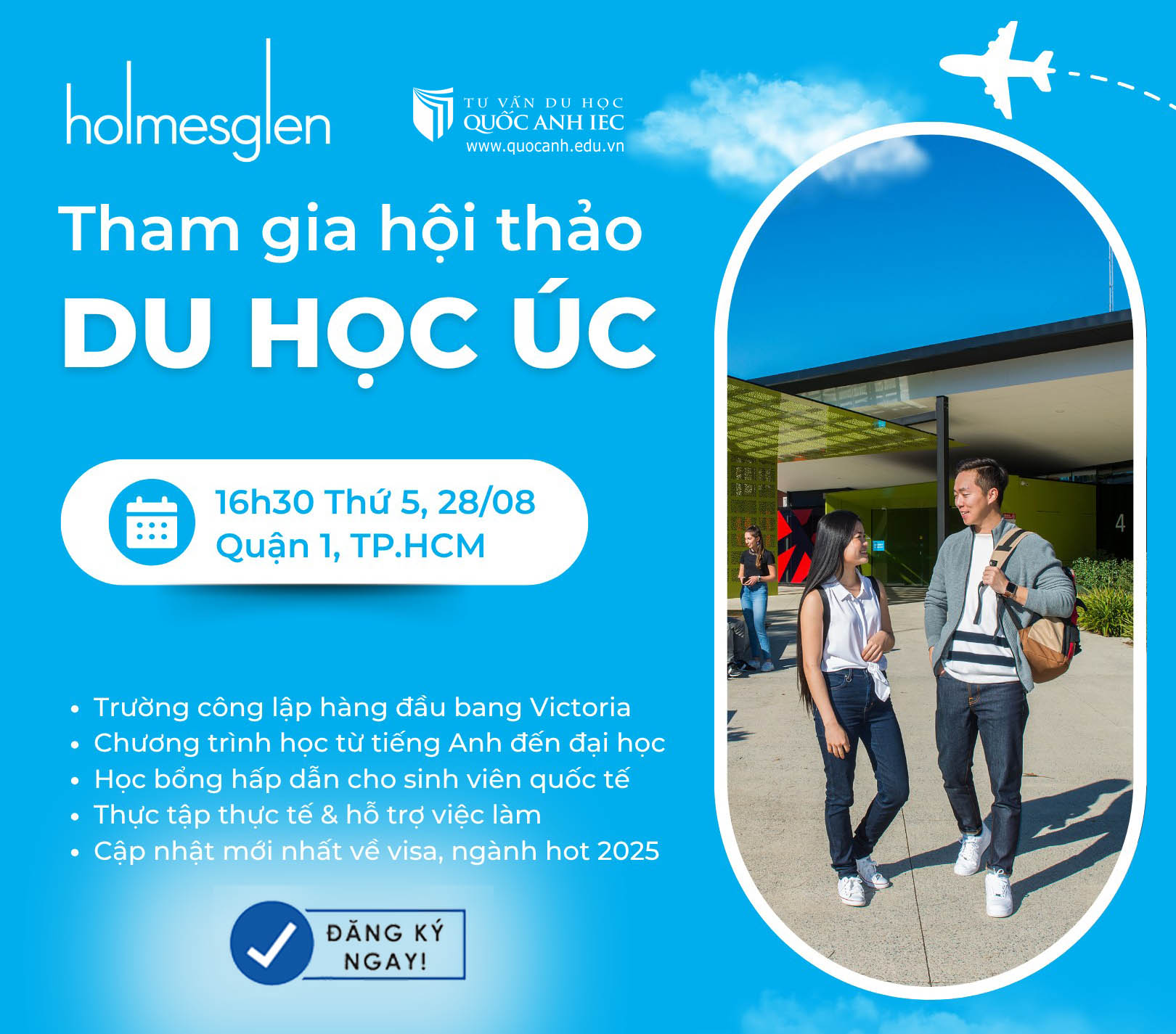Tham gia ngay hội thảo cùng Holmesglen - Trường công lập TOP đầu bang Victoria, Úc để: