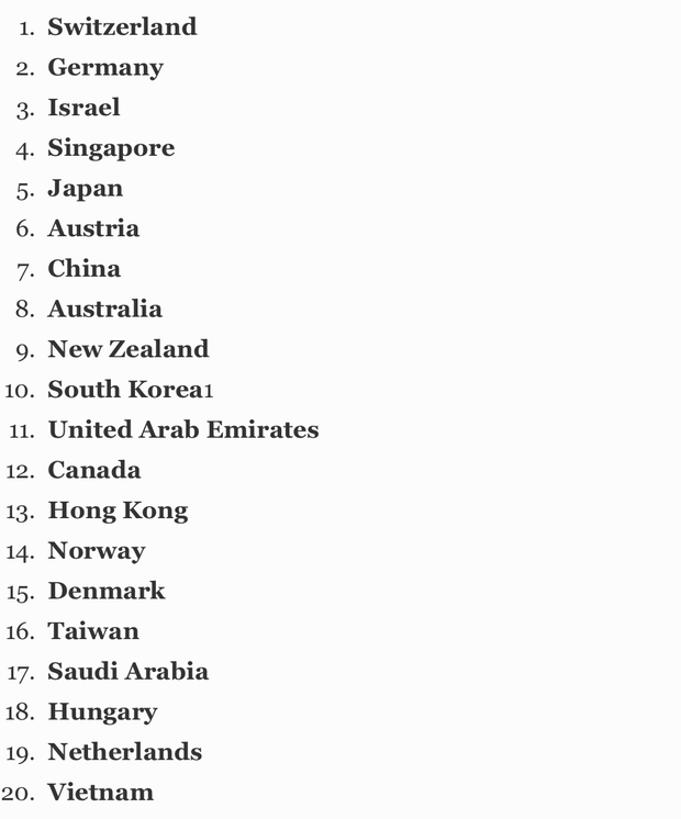 Đáng chú ý, thứ bậc của các quốc gia đã thay đổi rất mạnh trong nhiều tháng qua. Ban đầu, những đất nước phản ứng nhanh với dịch bệnh sẽ đứng hạng cao nhất. Còn hiện tại, quốc gia nào có nền kinh tế trụ vững và bền bỉ hơn sẽ được đánh giá cao hơn.