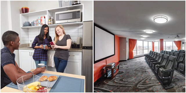 Một góc phòng sinh viên và phòng giải trí trong ký túc xá Seneca