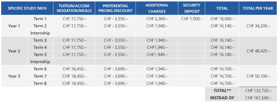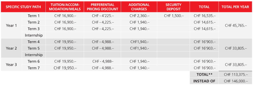 Đây là trường quản trị khách sạn Thụy Sĩ đầu tiên được cấp giấy chứng nhận TedQual từ Tổ Chức Du Lịch Thế Giới của Liên Hiệp Quốc. Tại 3 cơ sở đào tạo tại Le Bouveret, Lucern và Brig, sinh viên có cơ hội học tại khu vực nói tiếng Pháp và cả tiếng Đức của Thụy Sĩ, dù tiếng Anh là ngôn ngữ giảng dạy. Sinh viên tốt nghiệp Cử Nhân được nhận song bằng từ Thụy Sĩ (César Ritz) và Mỹ (Washington State University), bằng Thạc Sĩ do Đại Học Derby, Anh cấp.