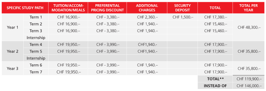 Tư vấn chọn trường, khóa học, ngành học, bậc học. Xin nhập học. Xin học bổng. Xin visa du học; Đào tạo tiếng Anh, kỹ năng học tập, kỹ năng sống cần thiết. Bố trí nhà ở, đón, bay, nhập học. Cùng nhà trường hỗ trợ học sinh, sinh viên trong suốt quá trình du học. Cập nhật thông tin việc làm – định cư, … cho sinh viên sau khi học xong. Đặc biệt, tặng vé máy bay 1 chiều đến Thụy Sĩ, cho các học sinh nhập học trong năm 2020 và kì tháng 1/2021 (không áp dụng đồng thời các chương trình ưu đãi khác, vui lòng liên hệ chúng tôi để được tư vấn chi tiết).
