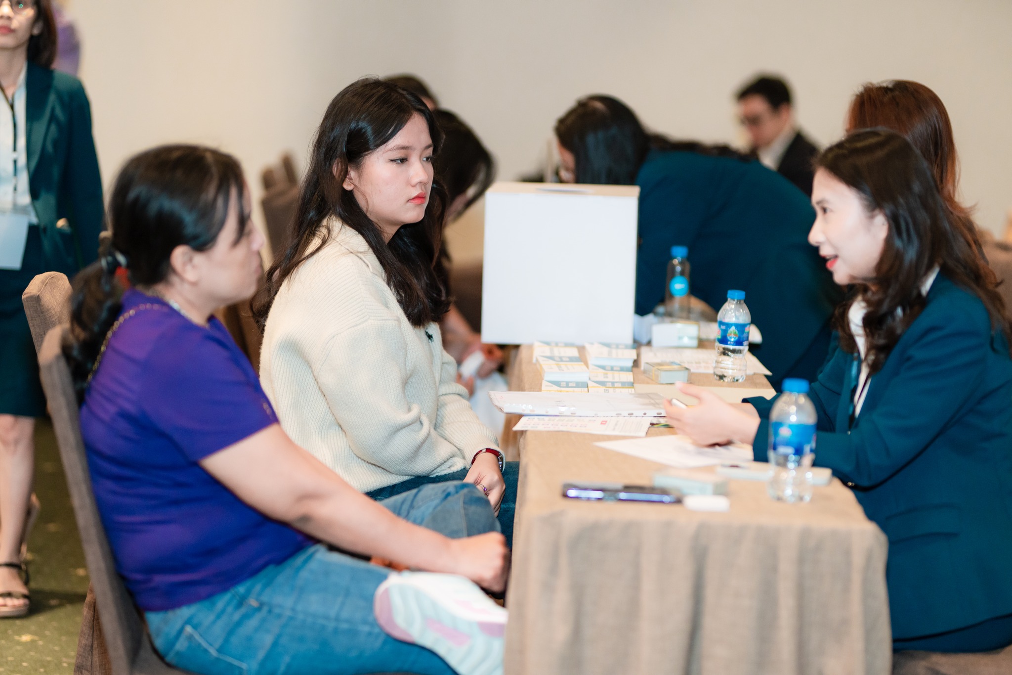 Phụ huynh và học sinh đang tư vấn tại Booth