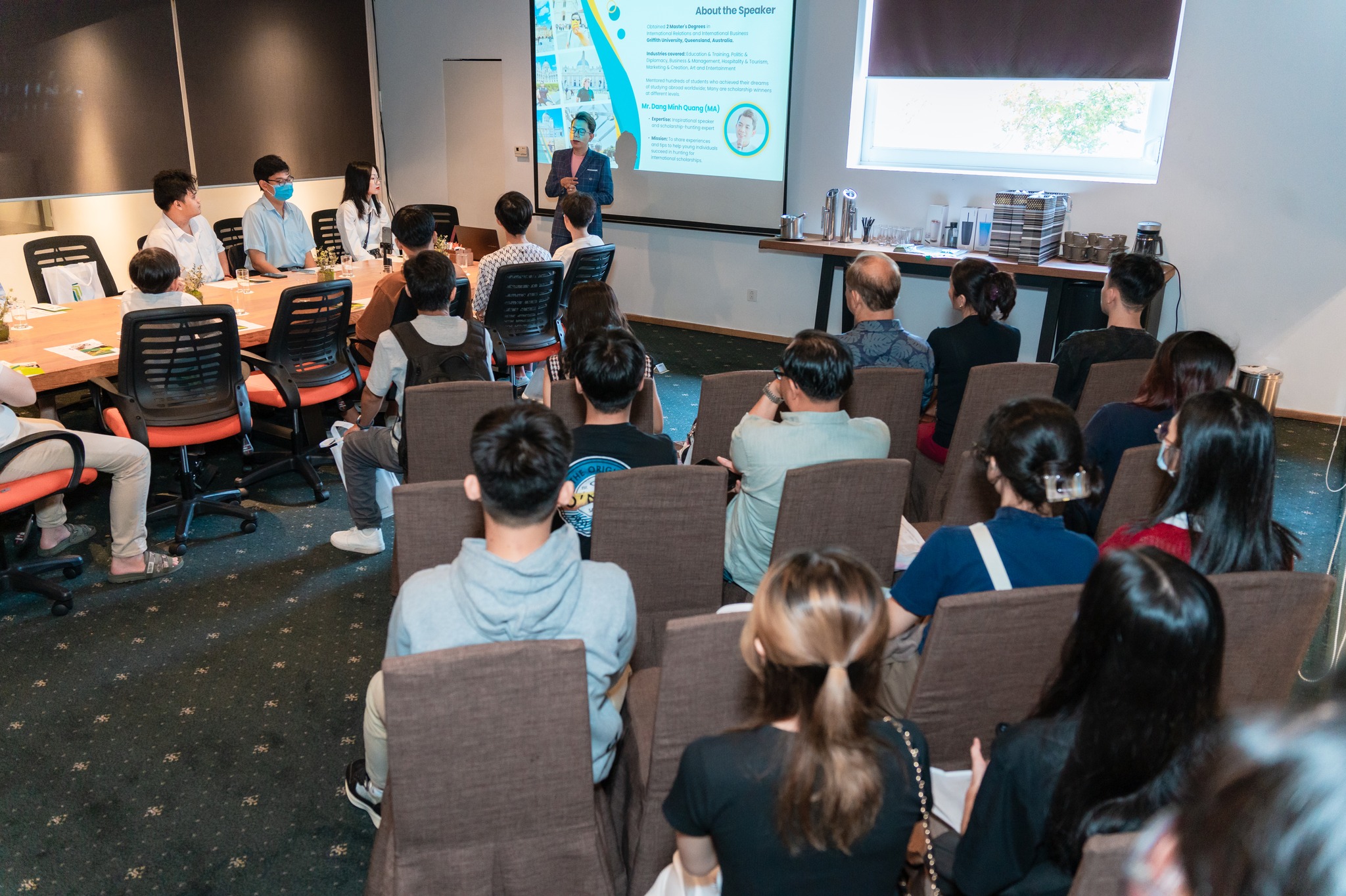 Sở hữu Profile đã từng đi qua 39 quốc gia, sở hữu nhiều bằng thạc sĩ tại các trường đại học trên toàn thế giới và là giảng viên của nhiều talkshow chia sẻ Học bổng khác. Phần trình bày đã thu hút các bạn trẻ rất nhiều với vô số câu hỏi gửi về cho anh Quang sau chương trình.